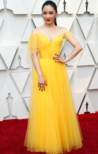Constance Wu put the yes you "can" in canary yellow. She was a presenter (not a nominee) in her custom Atelier Versace dress. Yet, she stole the show in 2019. Actually, 2019 was a FIRE red carpet year for the Oscars. Worth looking up a full gallery. Lady Gaga, Gemma Chan, Michelle Yeoh, and Chadwick Boseman all ate (as the kids would say).